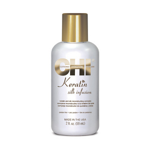 CHI Кератин Шелковая Инфузия, является мощным реконструктивным комплексом, который восстанавливает и увлажняет сухие, поврежденные волосы. В то время как натуральный кератин восстанавливает кутикулу волоса, молекулы шелка проникают вглубь волоса, для сохранения необходимого уровня влаги.