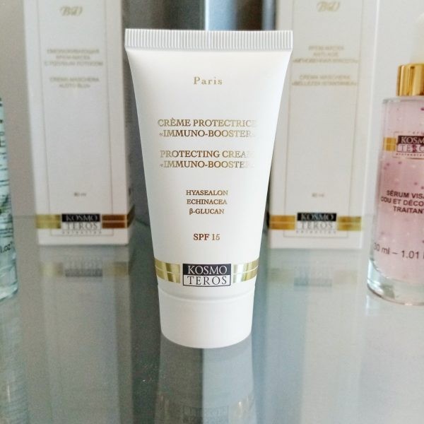 Защитный крем для лица KOSMOTEROS IMMUNO-BOOSTER обладает иммуностимулирующей активностью, сильным противовоспалительным, ранозаживляющим, антиаллергическим, фотозащитным действием, укрепляет иммунную систему кожи, стимулирует обновление клеток, восстанавливает разрушенный коллаген, одновременно поддерживая необходимый уровень увлажнения кожи, восстанавливая гидратацию дермы и препятствуя трансэпидермальным потерям воды. Для любого типа кожи, нуждающейся в иммунокоррекции, в том числе для сухой и чувствительной.